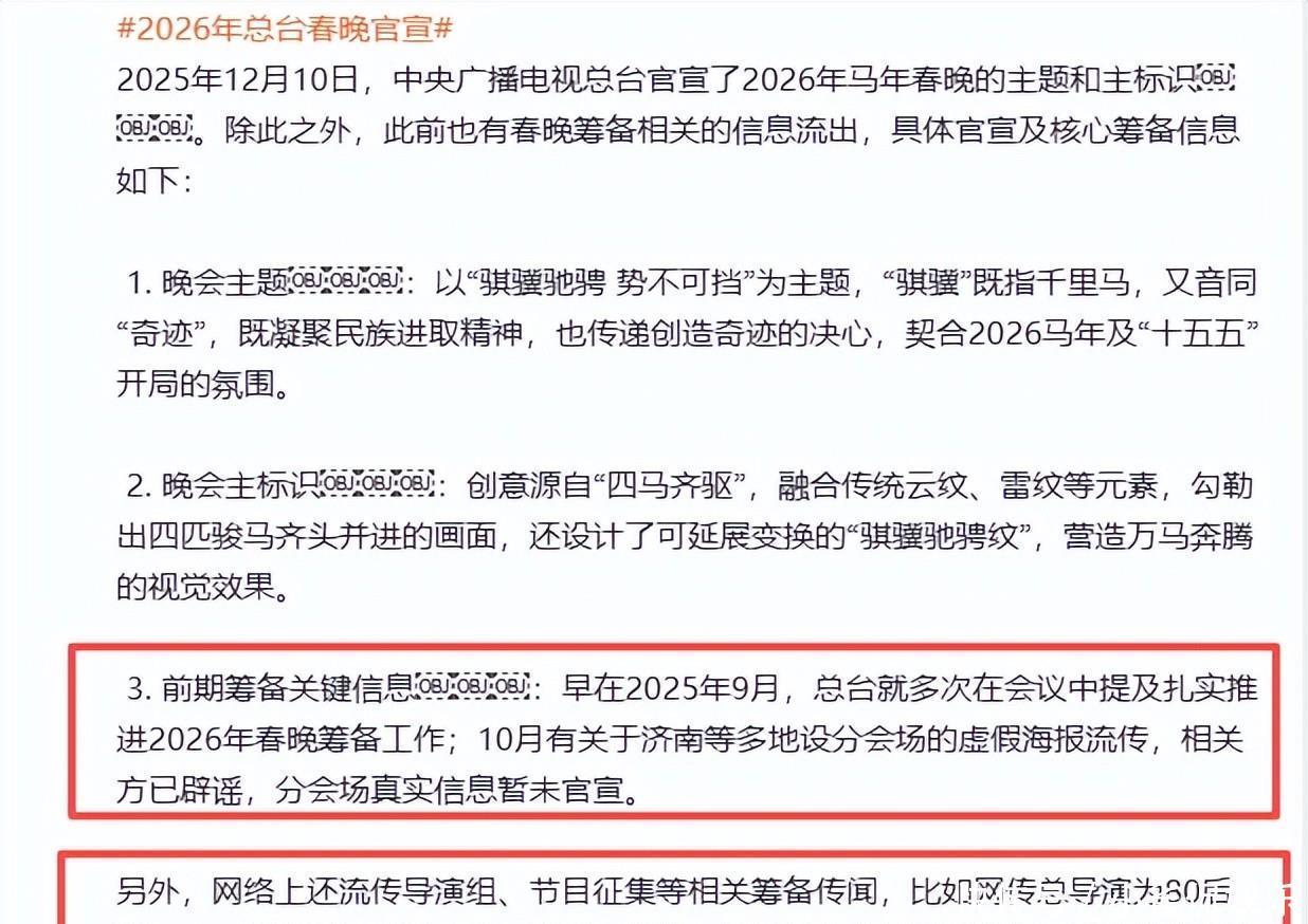 2026年央视春晚消息刚发,网上就开始闹腾。马年主题倒是挺喜庆,四匹马的标志看着也带劲儿。可大家反应冷淡,毕竟现在的春晚,热闹都到短视频里去了。