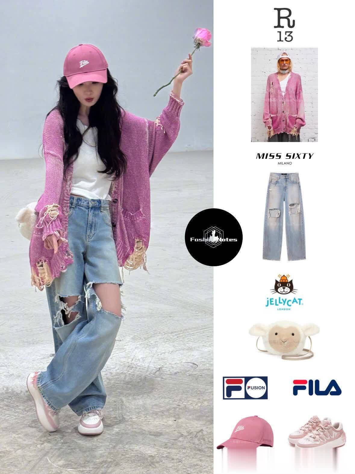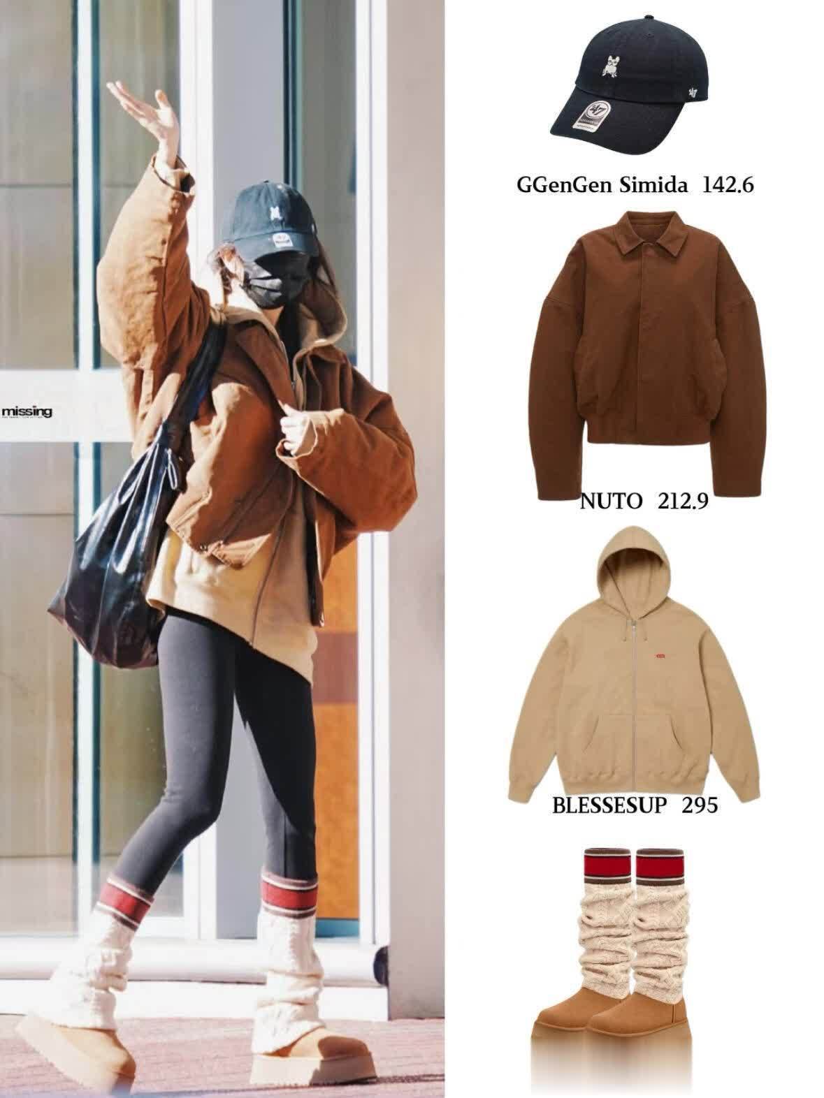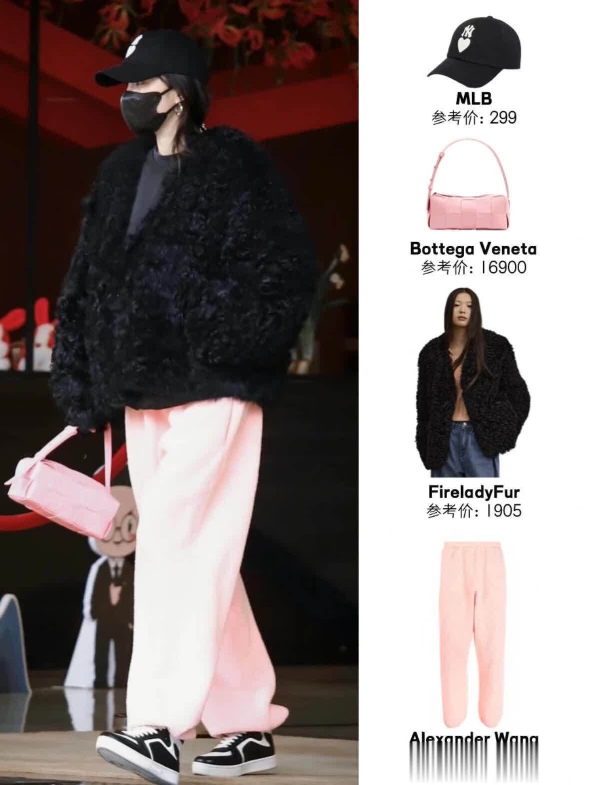 谁能想到黑色毛绒外套里,藏着条嫩粉色卫裤?这种“猛女配甜妹”的撞色,也就她敢试。外套故意选oversize,把身材衬得娇小,卫裤裤脚堆在鞋面上,配双黑白帆布鞋,拎只粉色小包,瞬间从酷姐切换成甜妹。这种风格最适合秋冬想装嫩的姐妹,深色外套压阵,内搭偷偷来点亮色,走在街上,别人一眼就记住你——“那个穿粉裤子的酷女孩”。