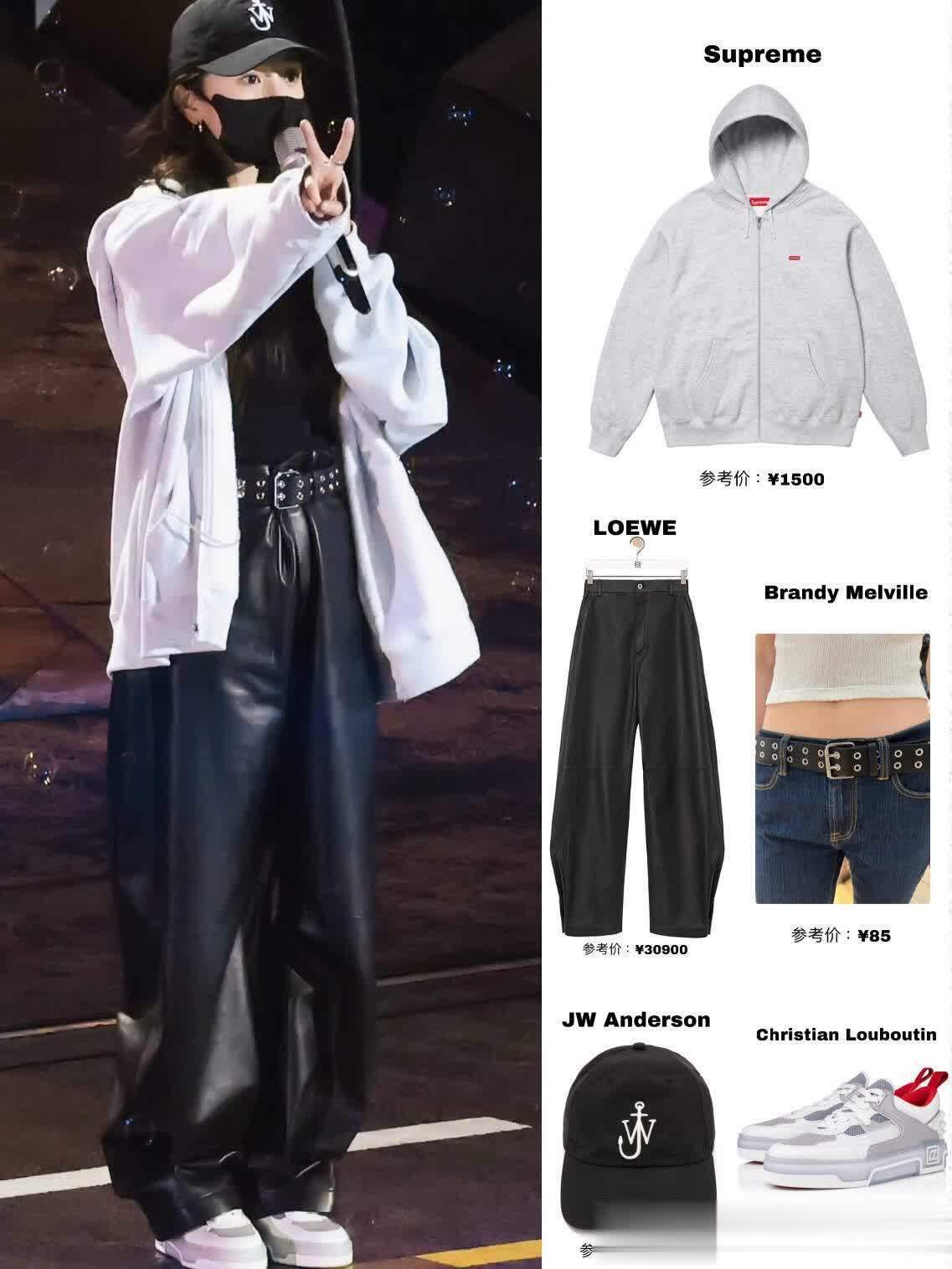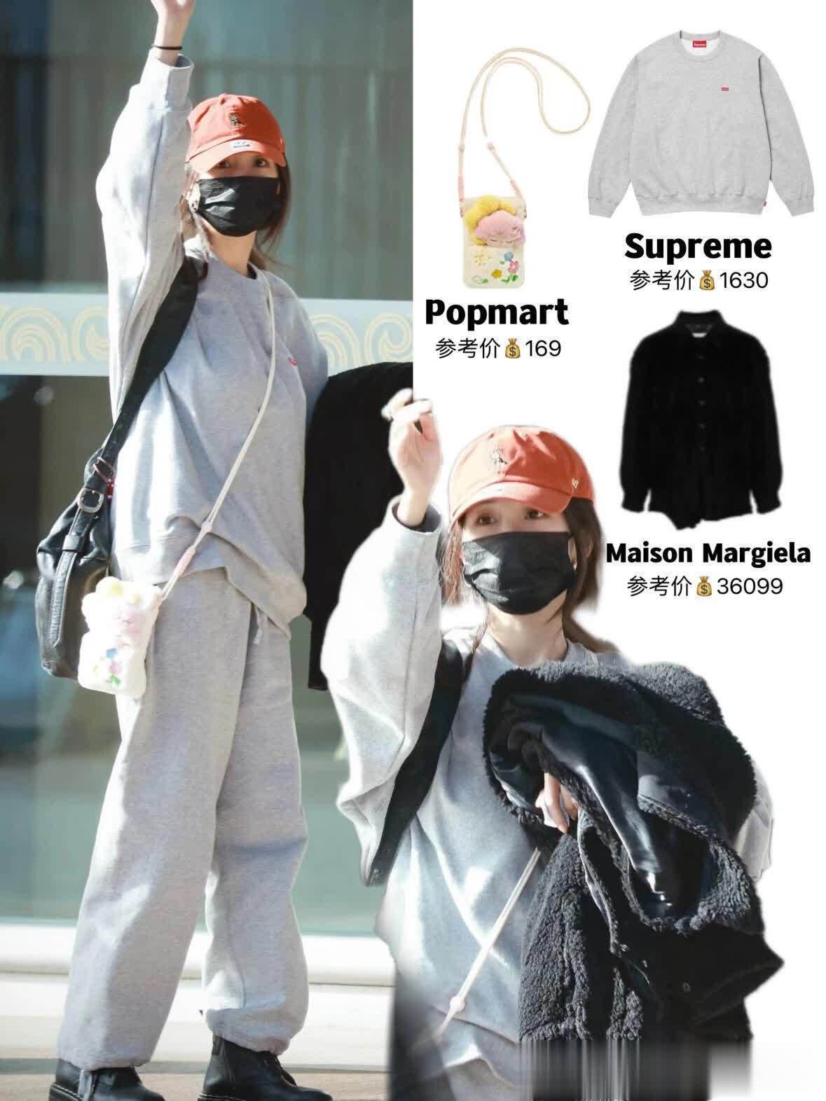 她太会玩“上宽下宽”了!浅灰连帽外套故意选大两码,内搭紧身黑上衣,下身配条黑色皮裤,裤腿宽得能装下两条腿,却靠腰上的金属腰带把比例拉回来。脚上踩双小白鞋,头上扣顶棒球帽,口罩一戴,乍一看像个酷帅的街头rapper,私下出街这么穿,舒服还不撞款。上周我仿着搭了套,灰色卫衣买大一号,配条阔腿牛仔裤,腰上系根帆布腰带,去livehouse时被问了三次链接,原来“松松垮垮”也能这么时髦。