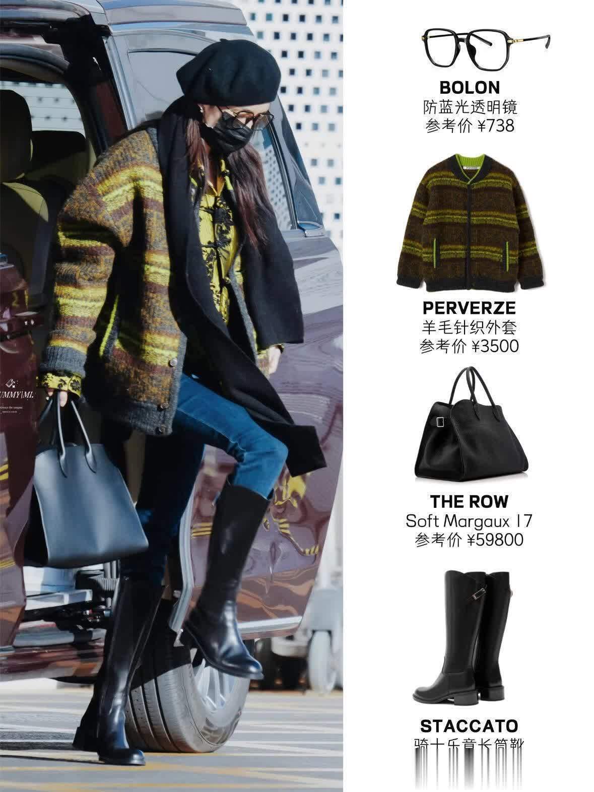格纹大衣配黑色长靴,她把复古穿得毫不费力。大衣选的是oversize款,长度盖过膝盖,内搭件亮黄色格纹衬衫,领口故意露出来,下身配条紧身牛仔裤,脚上的黑色长靴刚好卡在小腿肚,腰带一系,腰线明明白白。这种“上宽下紧”的搭配,把复古的优雅和现代的利落揉在一起,去美术馆看展这么穿,艺术气息直接拉满,连路人都以为你是时尚编辑。