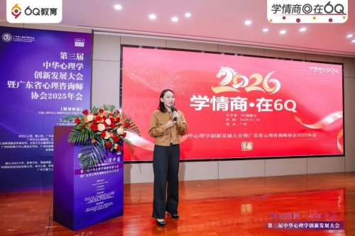 2026年1月17日至18日,第三届中华心理学创新发展大会在广州隆重举行,6Q教育迎来了双重的聚焦时刻。17日下午,胡季鑫总经理在主会场代表公司接过“十佳心理教育机构”的荣誉证书;次日,谢静文副总经理在第二报告厅进行了一场题为“学情商◎在6Q”的专题演讲。两相映照,完整呈现了这份行业认可背后的深度与温度。