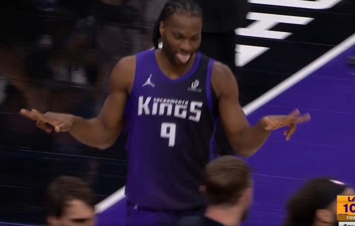 詹姆斯横传球直接塞入蒙克怀中 后者回头轰进45°追身三分!